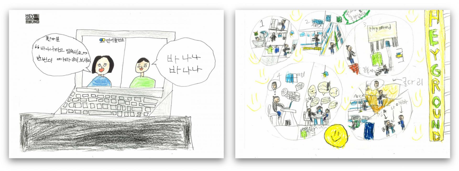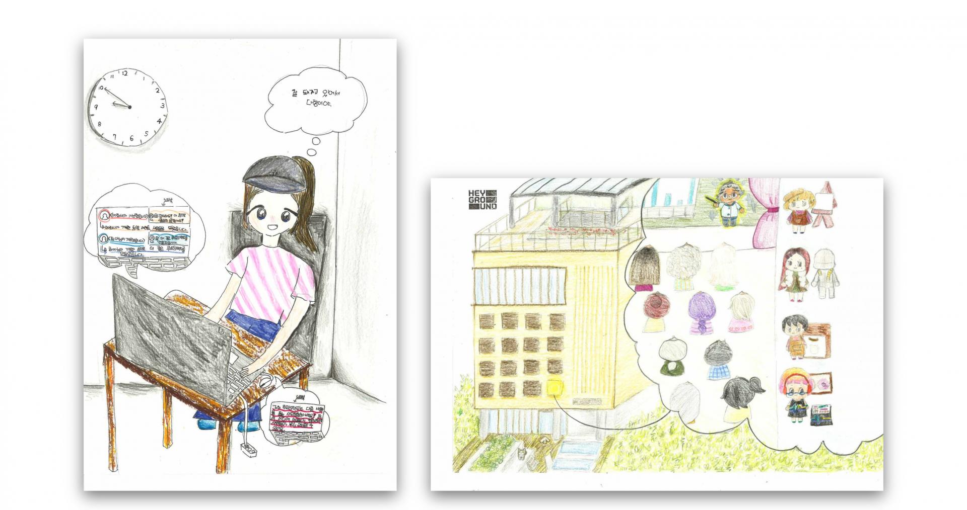 아이들이 그린 그림은 더 놀라웠습니다. 부모님의 회사가 하는 일을 이해하고 그것을 그림으로 섬세하게 표현했기 때문이었는데요. 헤이그라운드 팀 동료들에게 아이들의 그림을 보여준 후, 어떤 입주사가 하는 일일지 맞혀보게 했었는데, 정답률이 꽤 높더라고요. 아이들이 얼마나 세심하게 관찰하고 표현했는지 감탄하지 않을 수 없었어요.